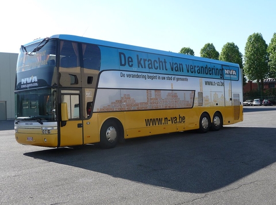 De N-VA organiseert een Ronde van Vlaanderen langs 30 steden en gemeenten met een prachtige campagnebus, met de campagneslogan en de naam van alle Vlaamse steden en gemeenten erop.